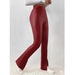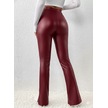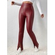 Kadın Yüksek Bel Önden Yırtmaçlı Deri Tayt Kırmızı
