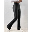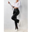 Kadın Yüksek Bel Önden Yırtmaçlı Deri Tayt Siyah