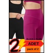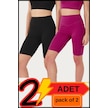 Kadın Yüksek Bel Toparlayıcı Kısa Siyah &mürdüm Şort Tayt 2'li Paket Lycralı Biker Shorts 21077 Siyah - Mürdüm