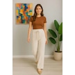 Kadın Yüksek Bel Triko Pantolon Beyaz
