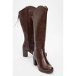 Kadın Yüksek Topuklu Fermuarlı Çizme Gerçek Deri Br 08012 Kahverengi Null Kahverengi