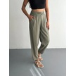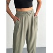 Kadın Yüksel Bel Beli Bağcıklı Cepli Rahat Paça Pantalon - Su Yeşili Su Yeşili