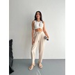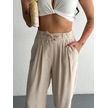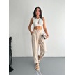 Kadın Yüksel Bel Beli Bağcıklı Rahat Boru Paça Pantalon - Kırık Beyaz Kırık Beyaz