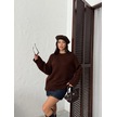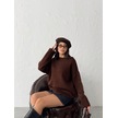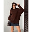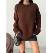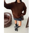 Kadın Yumuşak Dokulu Bisiklet Yaka Oversize Basic Triko Kazak Kahverengi