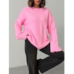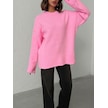 Kadın Yumuşak Dokulu Bisiklet Yaka Oversize Basic Triko Kazak Pembe