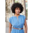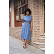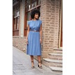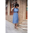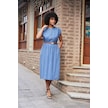 Kadın Yumuşak Dokulu İpeksi Modal Kumaş Hakim Yaka Beli Lastikli Önü Düğmeli Diz Altı Elbise-indigo Indigo