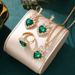 Kadın Yuvarlak Saat Ve Kolye+küpe+yüzük Takı Seti, 5 Adet/takım Yeşil
