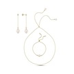 Kadın Zincirli Asansör Model Doğal İnci Küpe Kolye Bileklik Üçlü Set Sarı Gümüş