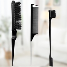 Kadınlar İçin 3 Parçalı Saç Şekillendirici Tarak Seti: Şekillendirici Fırça, Fare Kuyruğu Tarak, Kenar Fırçası - Tüm Saç Tipleri İçin Siyah Plastik Tarak Seti