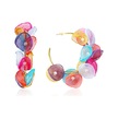 Kadınlar İçin Çiçek Kumaş Küpeler, Renkli Taze Daire Uzun Püskül Çok Renkli