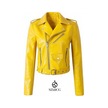 Kadınlar İçin Eğik Fermuarlı Günlük Kısa Deri Ceket Sarısarı