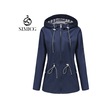Kadınlar İçin Orta Boy Kapüşonlu Yağmurluk Büyük Beden Trençkot Mavi