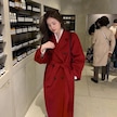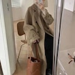 Kadınlar İçin Orta Uzunlukta Hepburn Tarzı Üst Düzey Mizaçlı Bol Yünlü Palto Kahverengi
