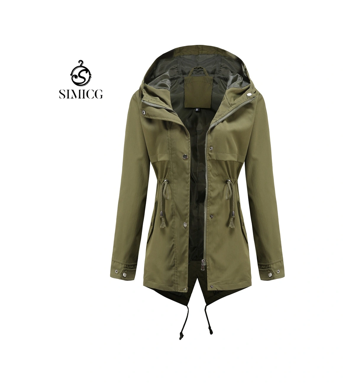 Kadınlar İçin Orta Uzunlukta Kapüşonlu Uzun Kollu Trençkot Yeşil