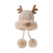 Kadınlar İçin Şık Noel Temalı Örgü Kulaklıklı Bere Renkli Boynuz Detaylı Sıcak Kış Şapkası Bej