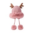 Kadınlar İçin Şık Noel Temalı Örgü Kulaklıklı Bere Renkli Boynuz Detaylı Sıcak Kış Şapkası Pembe