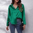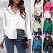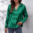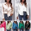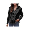 Kadınlar Katı Saten Gömlek Uzun Kollu Düğmeler Casual Gömlek, Renk Siyah