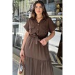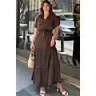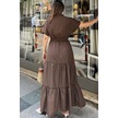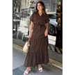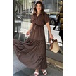 Kahve Kısa Kol, Airobin Kumaş, Yarım Patlı, Kemerli/kuşaklı, Eteği Pliseli, Cepli Maxi Uzun Elbise Kahve