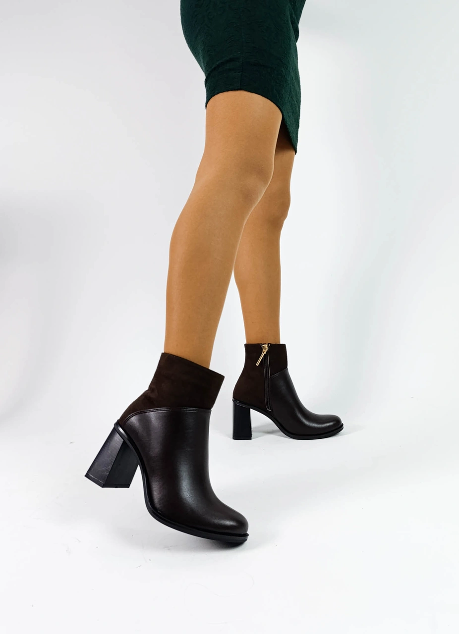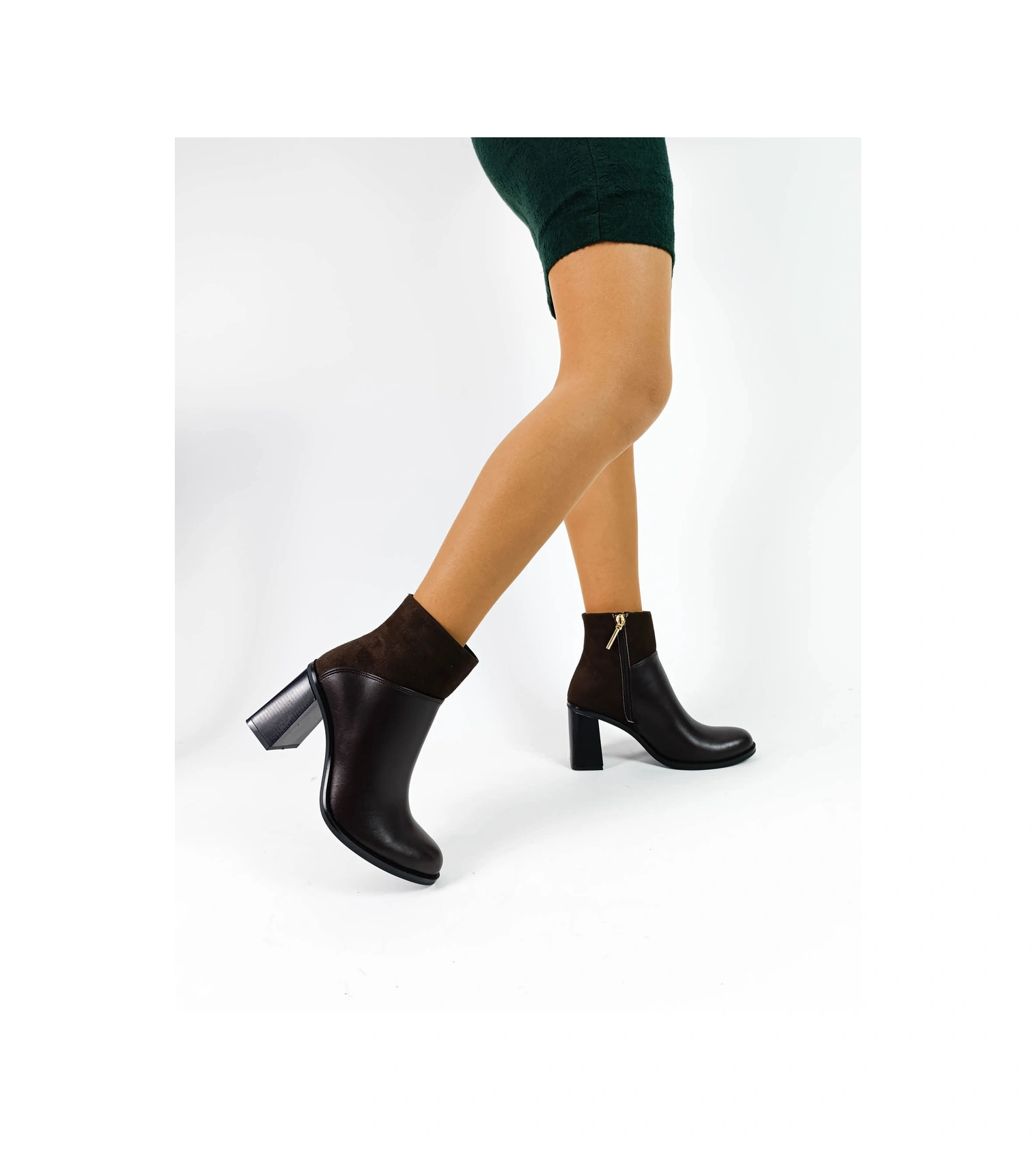 Kahve Renk Fermuarlı Kalın Topuk Süet Cilt Kadın Topuklu Bot Kahve
