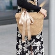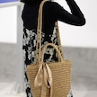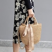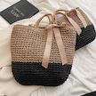 Kahve & Siyah Yogodlns El Yapımı Hasır Çanta Kurdelalar Ilmek Plaj Örgü Çanta Tote 32cm 26cm