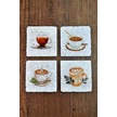 Kahve Temalı Doğal Taş Bardak Altlığı - Stone Coasters Çok Renkli