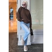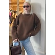 Kahverengi Bisiklet Yaka Oversize Triko Kazak Mg1972 Kahverengi