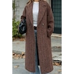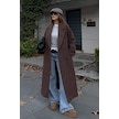 Düğmeli Cepli Kadın Peluş Kaban Haki