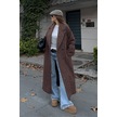 Düğmeli Cepli Kadın Peluş Kaban İndigo