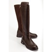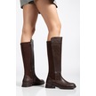 Kahverengi Kadın Çizme Düz Taban Streç Fermuarlı-4332 Kahverengi