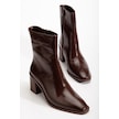 Kahverengi Kadın Kalın Topuklu Bot Rugan Küt Burun Yüzüdüz-4256 Kahve