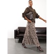 Kahverengi Kemer Detaylı Çiçekli Şifon Etek 0651 Kahverengi