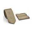 Kahverengi Piti Kare Desenli Bej Dokuma Kumaş Mendilli Slim Fit Kravat // Sdk-2503-5 Bej