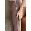 Kahverengi Süet Yandan Fermuarlı Pantolon - 40578 Kahverengi