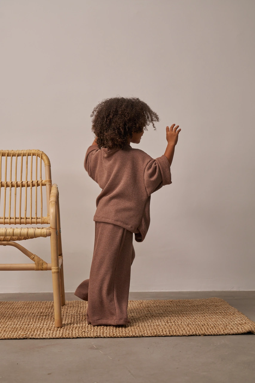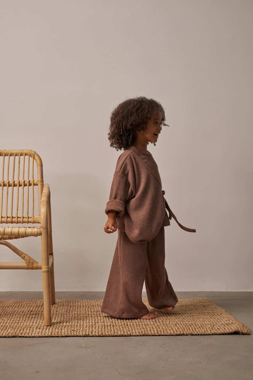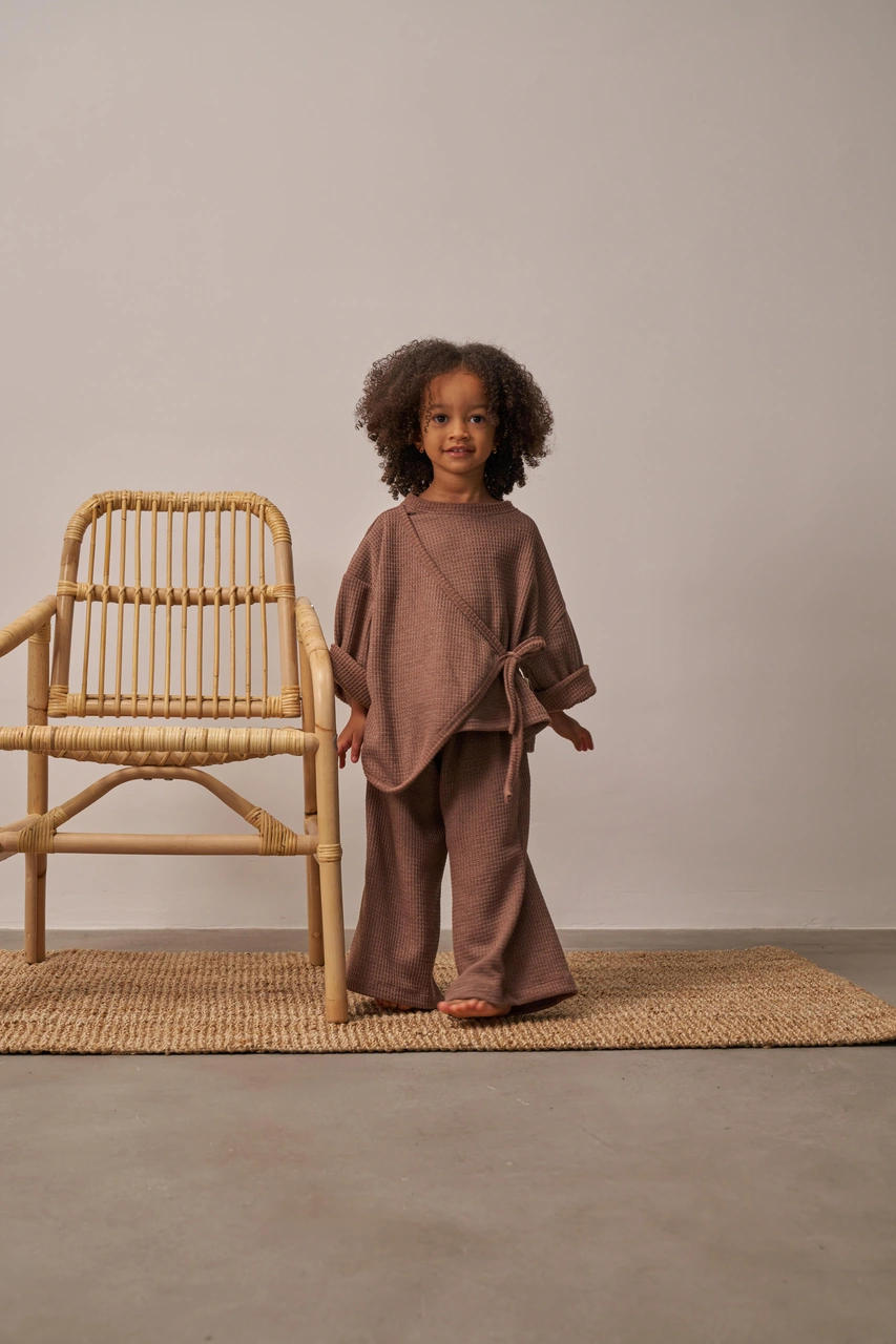 Kahverengi Waffle Bağlamalı Takım Kahverengi