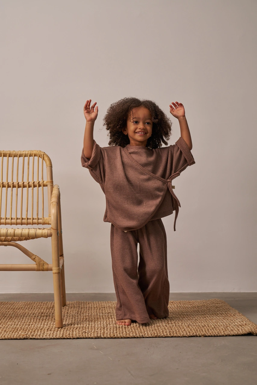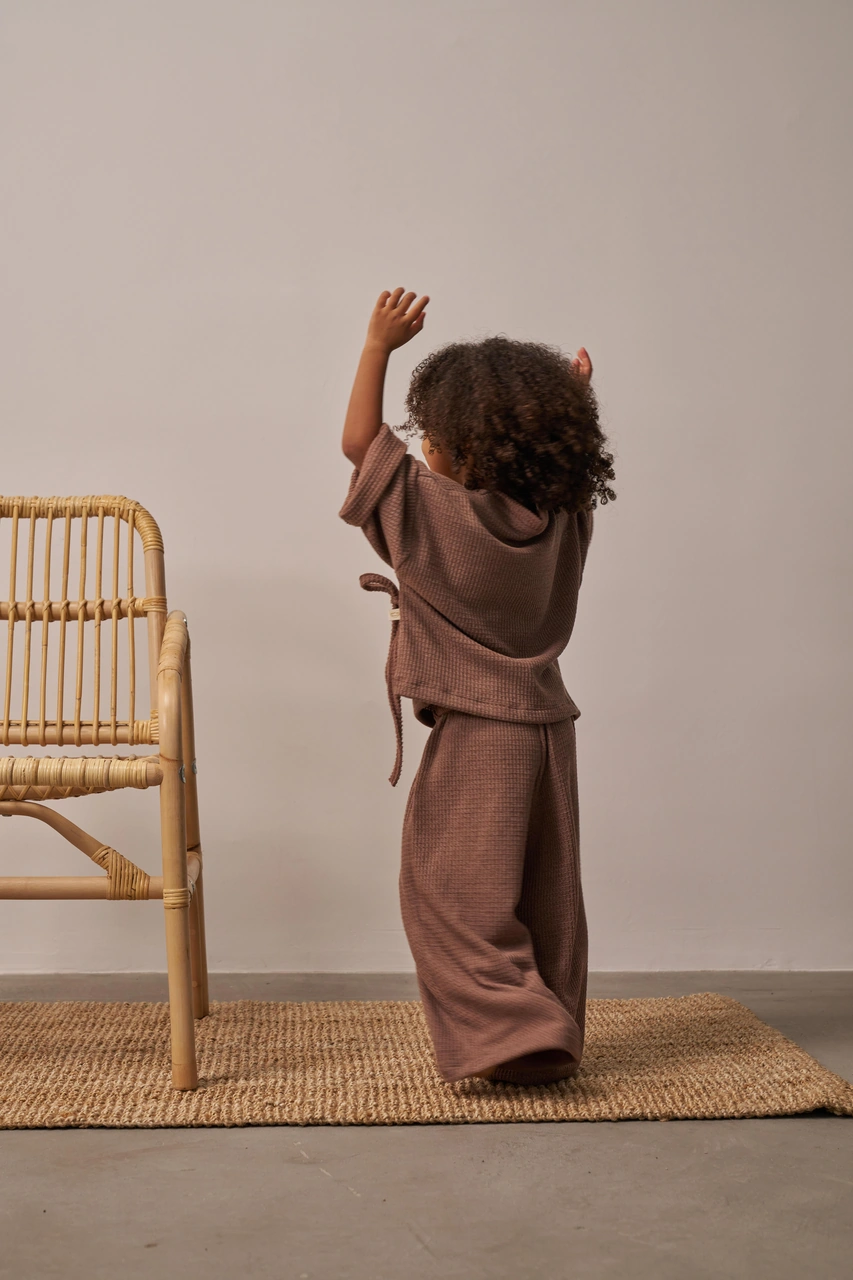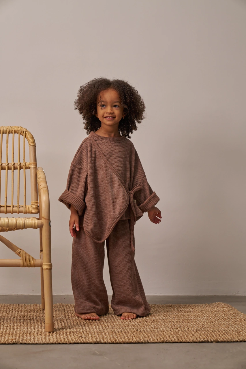 Kahverengi Waffle Bağlamalı Takım Kahverengi