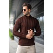 Kahverengi Yarım Balıkçı Erkek Triko Kazak E7423 Kahverengi
