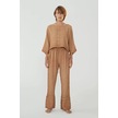 Kahverengi Yüksek Kalite Pamuk Truvakar Kollu Üst-yüksek Belli Pantolon Takım Kahverengi