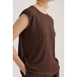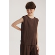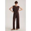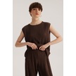 Kahverengi Yuvarlak Yaka Kolsuz Pliseli Bluz Desenli
