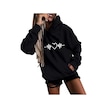 Kaixinjiuhao Kadın Moda Rahat Eğlenceli Baskı Kapşonlu Kazak Gevşek Spor Üstleri Kazak Siyah