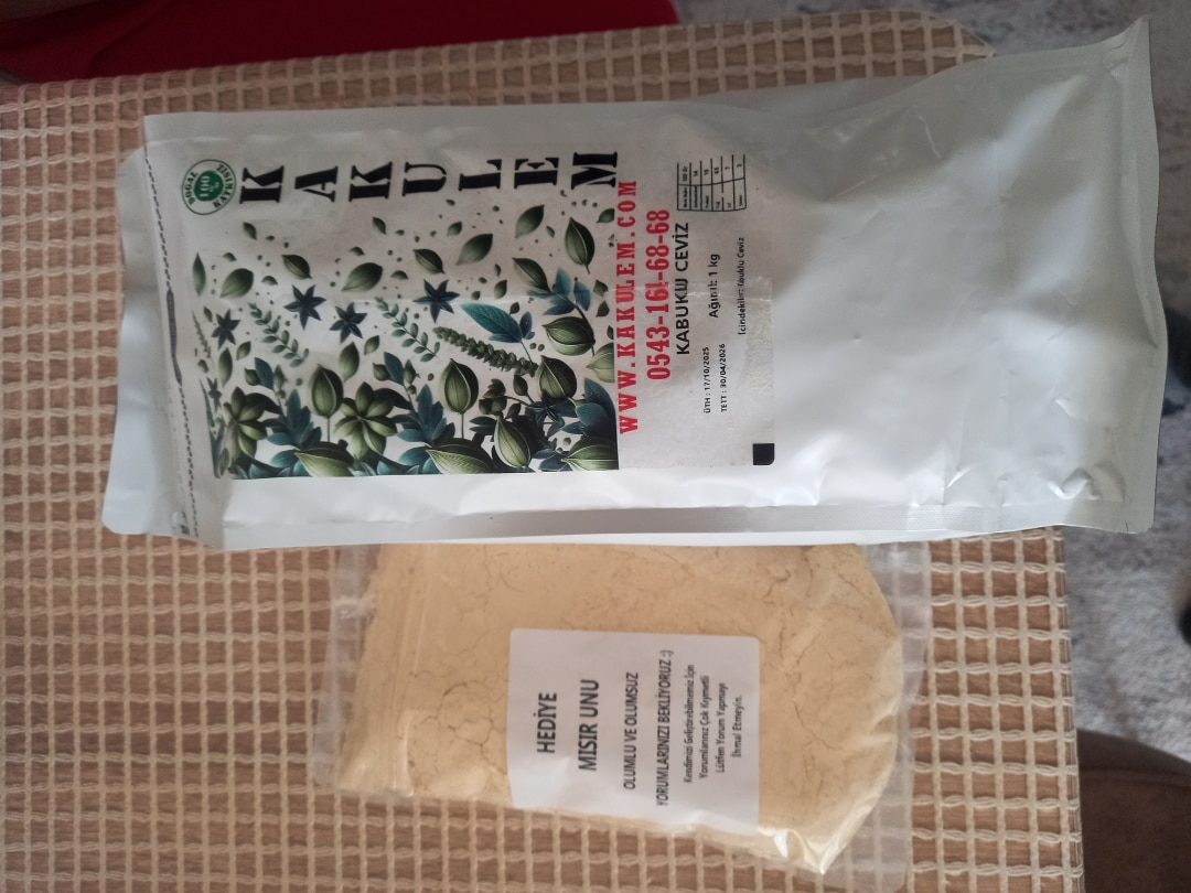 Yarım kilo kadarını kırdım resimde göründüğü gibi ürün. ayrıca pek çürük çıkmadı yarım kilo da 4 5 tane falan çıktı tadıda fena değil ama piyasadaki cevizlerden ekstra bi numarası yok fiyatı uygun olduğu sürece tercih edilebilir. hediye olarak gönderilen un için teşekkür ederim :)