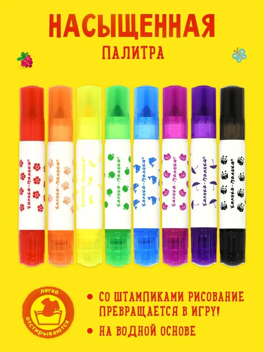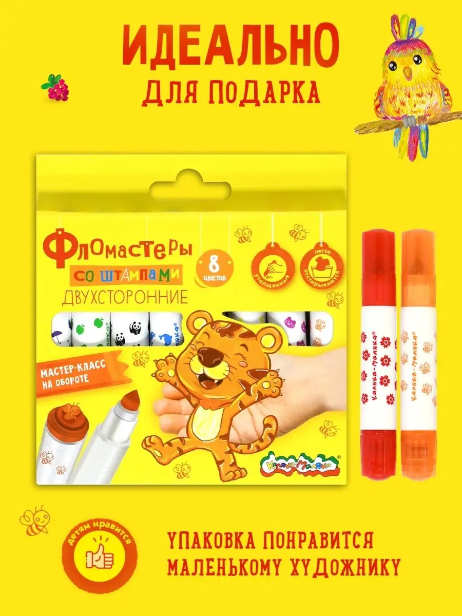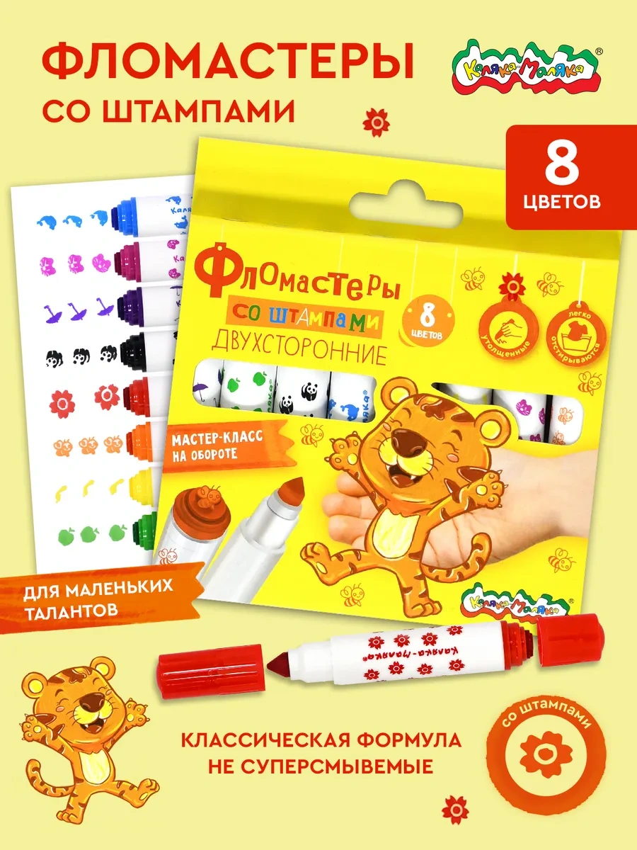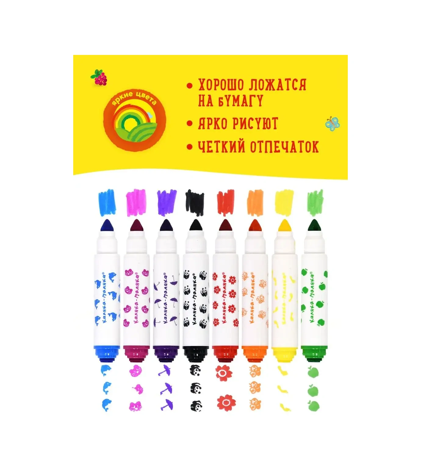 Kalaka-malaka Çift Taraflı Damgalı Keçeli Kalemler 8 Renk Çocuk Seti 14425601