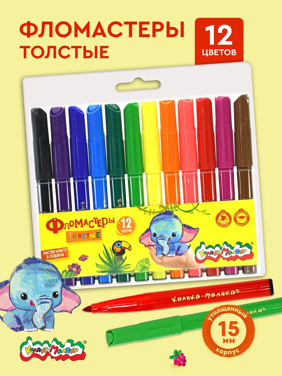 Kalaka-malaka Kalın İşaretleyici Kalemler Çocuklar İçin 12 Renk Set 14425600