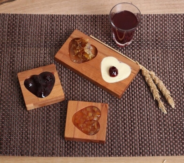 Kalbim Mini İkili Sunum Tabağı - Servis Tabağı - Bambu Tabak