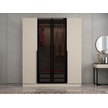 Kale Plus 4 Mebran Kapaklı 2 Çekmeceli Dolap Kumtaşı Mebran Füme Cam 210cm Kumtaşı