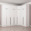 Kaleplus 7 Kapaklı 2 Çekmeceli Köşe Dolap + Yüklük Beyaz Mebran Beyaz Çizgili 255cm Beyaz