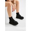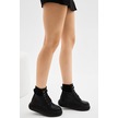 Kalın Poli Taban Lastik Boğazlı Bağcıklı Kadın Siyah Cilt Günlük Bot Tbrds005 Siyah Cilt