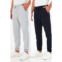 Kalın Siyah-antrasit Erkek 2'li Eşofman Altı Jogger Arka Cepli Lastik Paça Regular Fit Şardonsuz 001