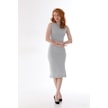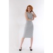 Kallima Gri Kolsuz Diz Altı Yırtmaçlı Fitilli Esnek Elbise Gri