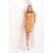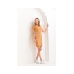 Kallima Hardal Vücuda Oturan Kısa Kollu Mini Fitilli Esnek Elbise Hardal