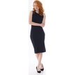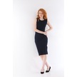 Kallima Lacivert Kolsuz Diz Altı Yırtmaçlı Fitilli Esnek Elbise